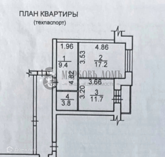 Жилая площадь 17.2 м2