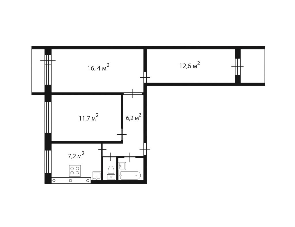 Жилая площадь 40.7 м2