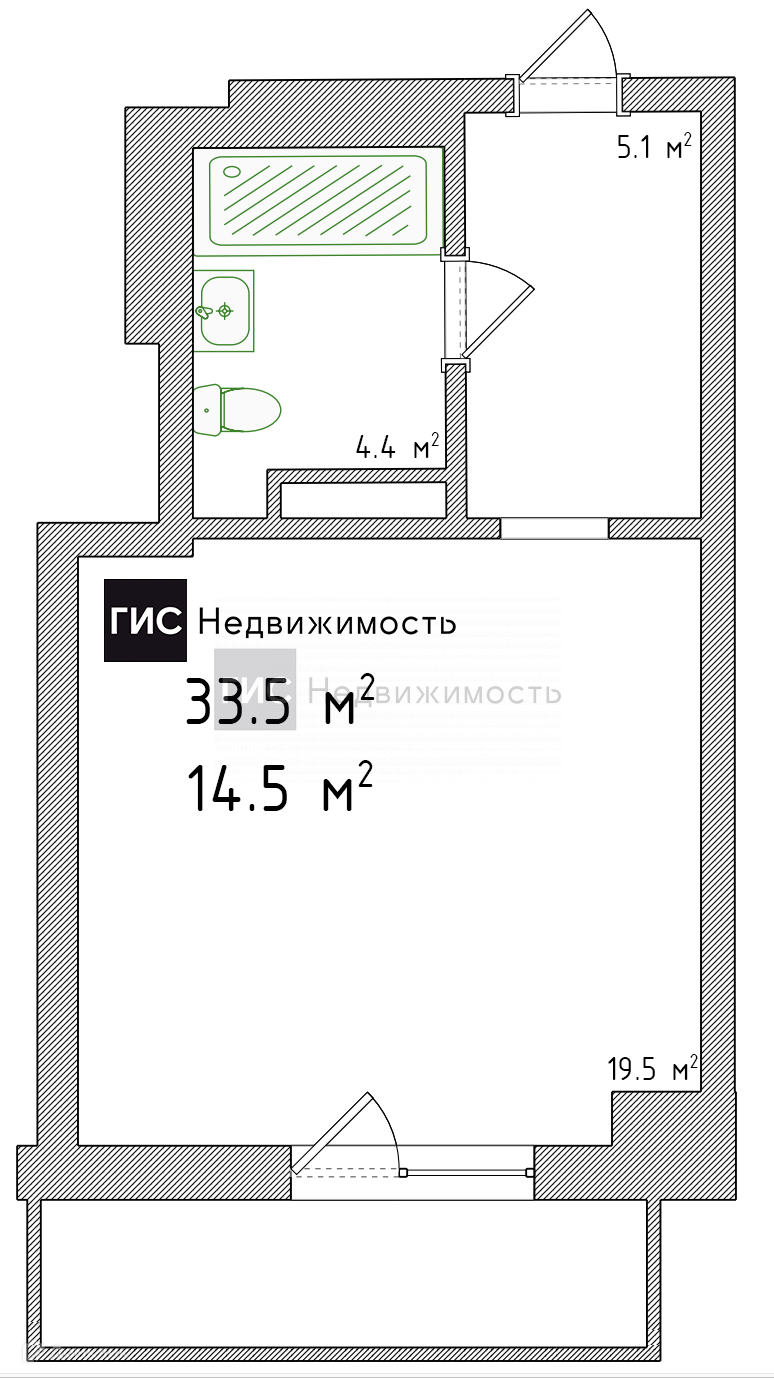 Общая площадь 33.52 м2