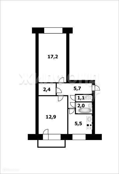 2-комнатная квартира, 46.8 м2, этаж 5 / 5, на продажу в Новосибирске, улица Иванова, 15
