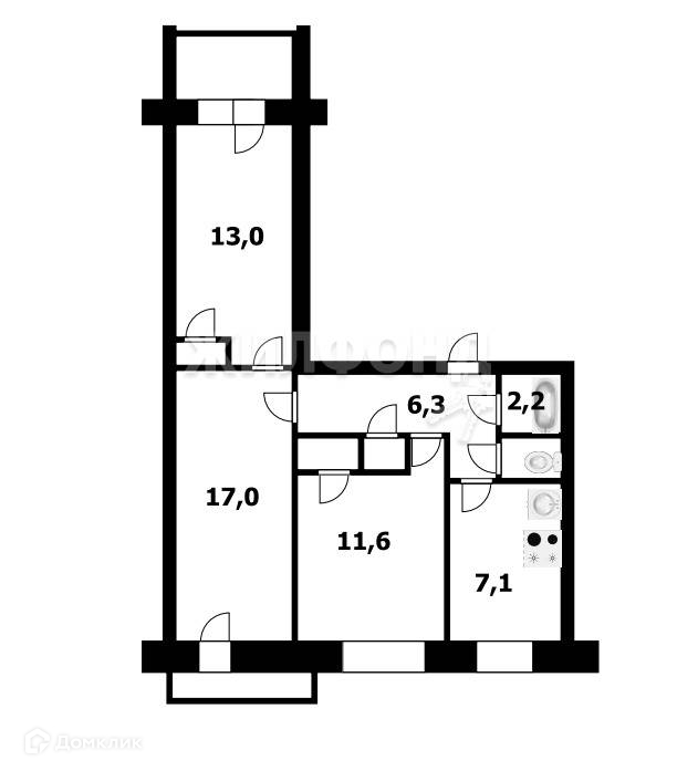 3-комнатная квартира, 59.9 м2, этаж 9 / 9, на продажу в Новосибирске, Обская улица, 139