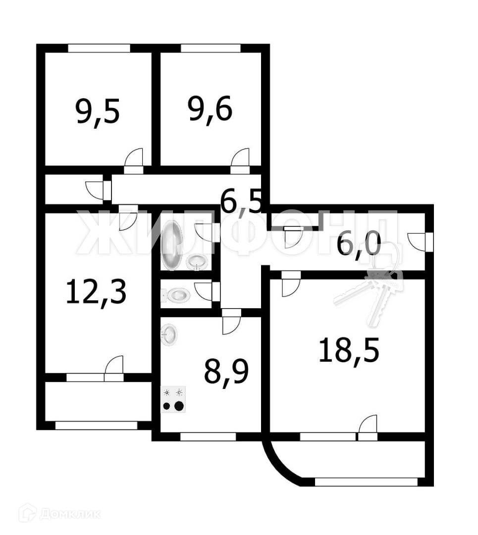 4-комнатная квартира, 77.4 м2, этаж 2 / 10, на продажу в Новосибирске, улица Фадеева, 91
