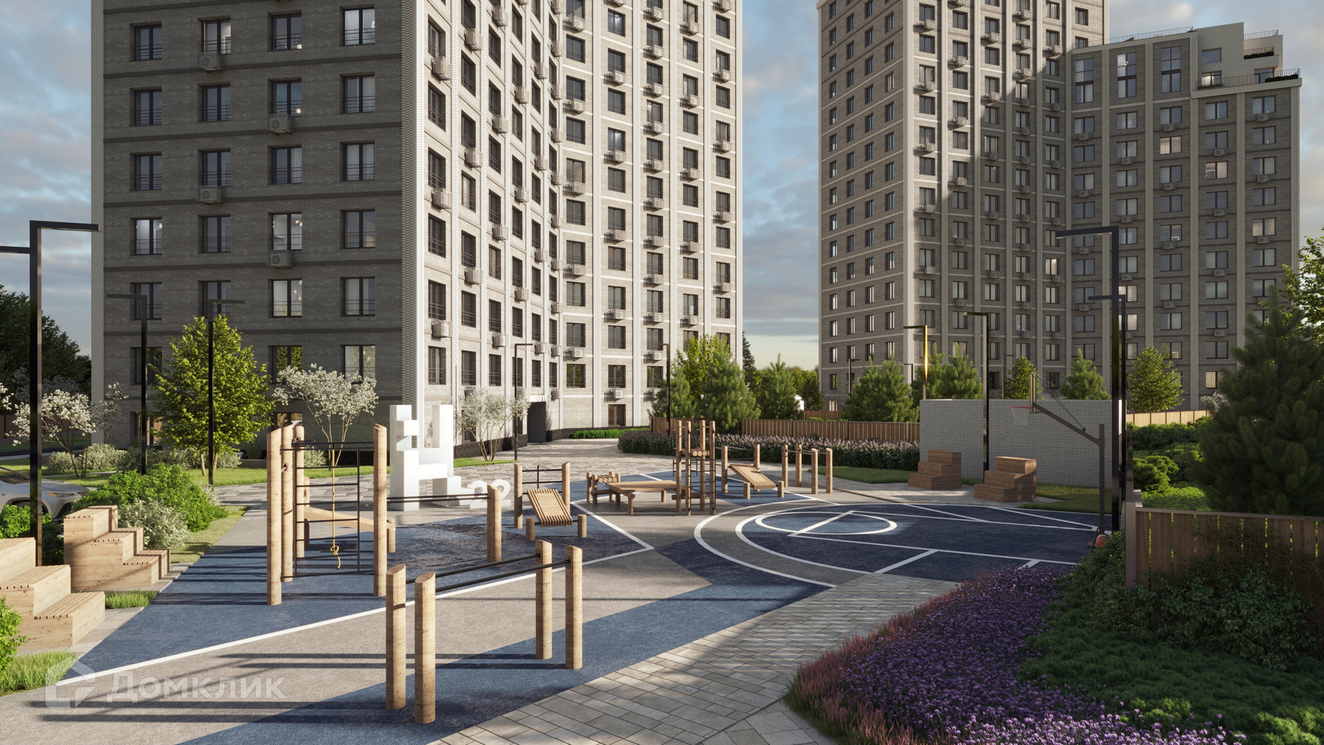 Рационально организованное пространство двора, три зоны, построенные в соответствии с тремя составляющими структурной формулы сахара C12H22O11: зона с пятью детскими площадками, зона спорта с мини-трибунами, зона для общения и отдыха с беседками и зеленью. Дружелюбная, безопасная среда для непринуждённого времяпровождения.