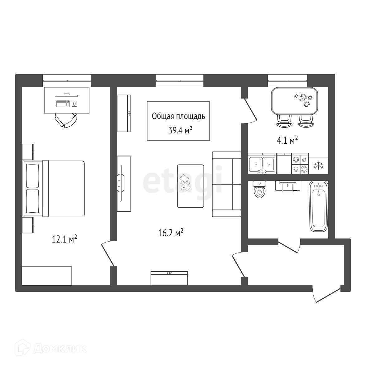 Общая площадь 39.4 м2