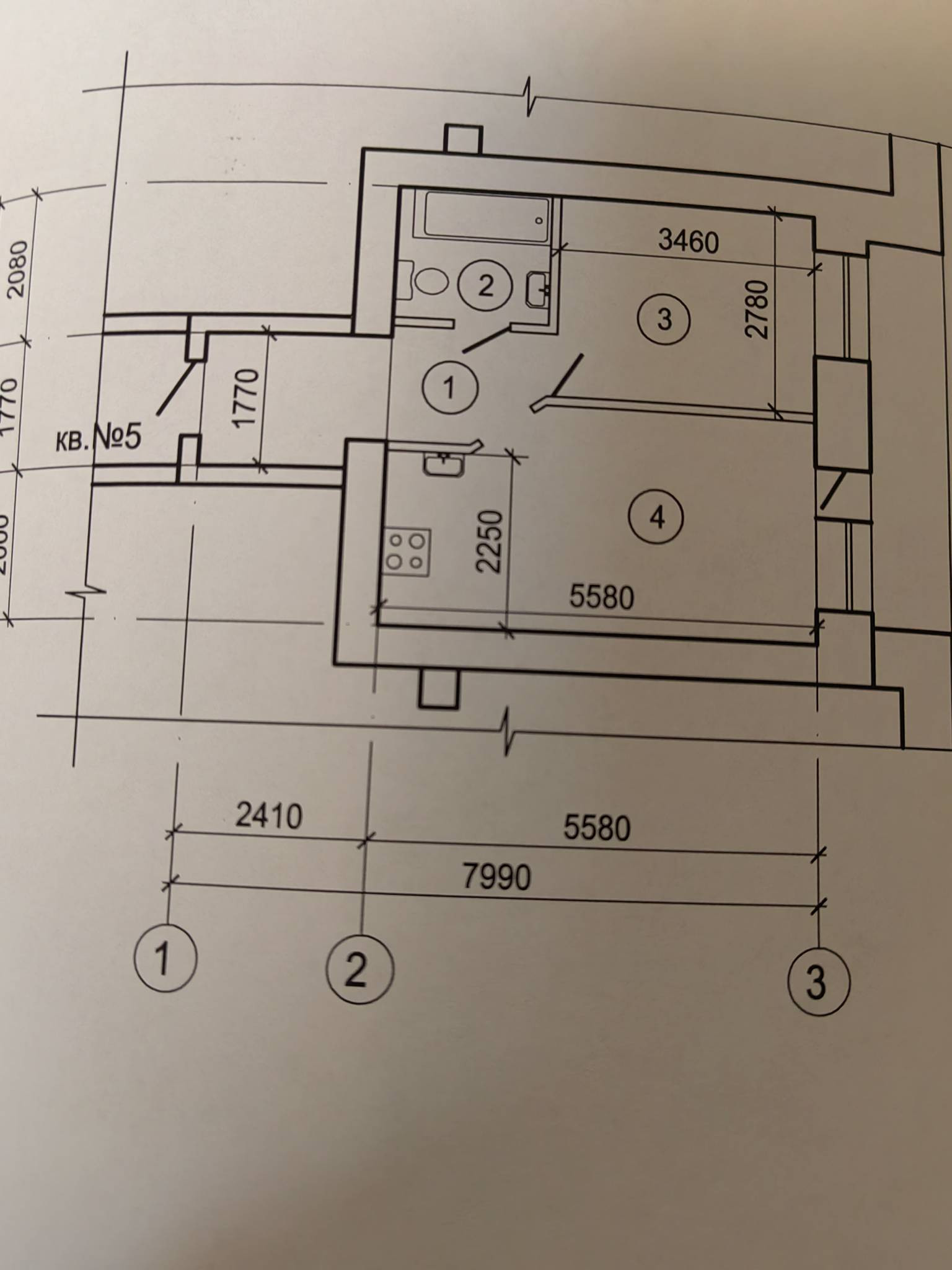 Площадь кухни 3.4 м2
