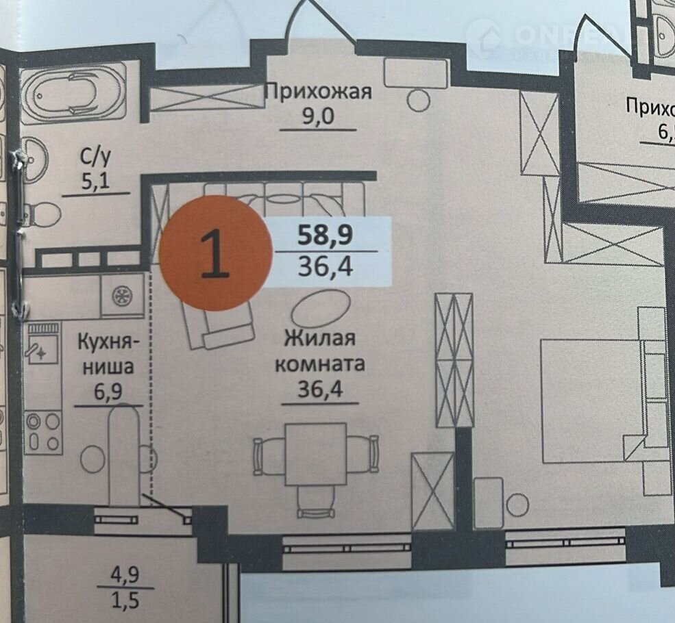 Общая площадь 59 м2
