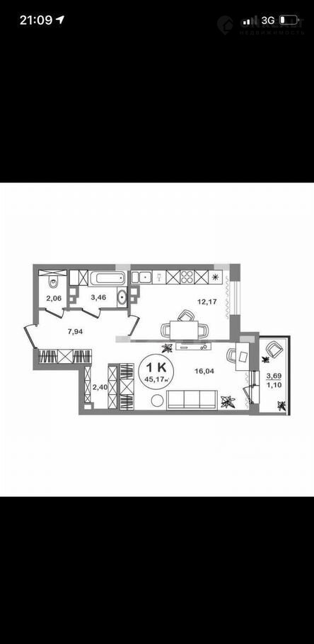 Общая площадь 46 м2