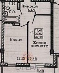 Жилая: 15.4 м2