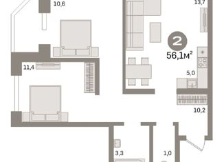 Общая площадь: 56.1 м2