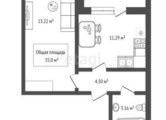 Общая площадь: 35 м2