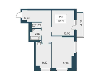 Общая площадь: 62.72 м2