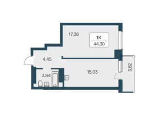 Общая площадь: 44.3 м2