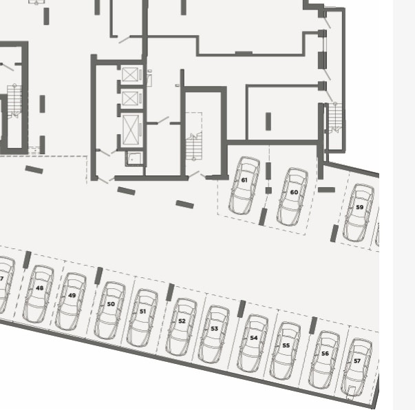 Удобная отапливая парковка на -1 этаже, расположена возле лифтового отсека.