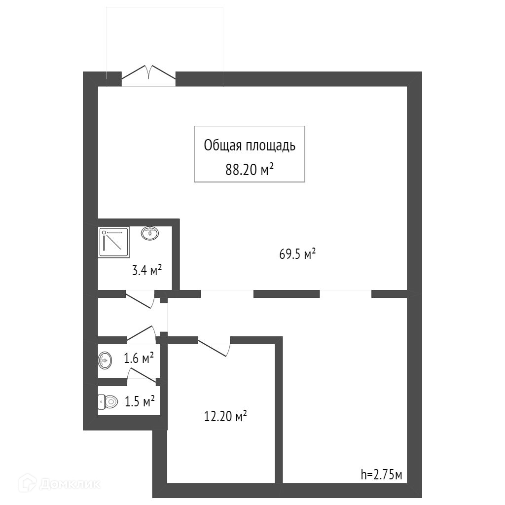 Общая площадь 88 м2