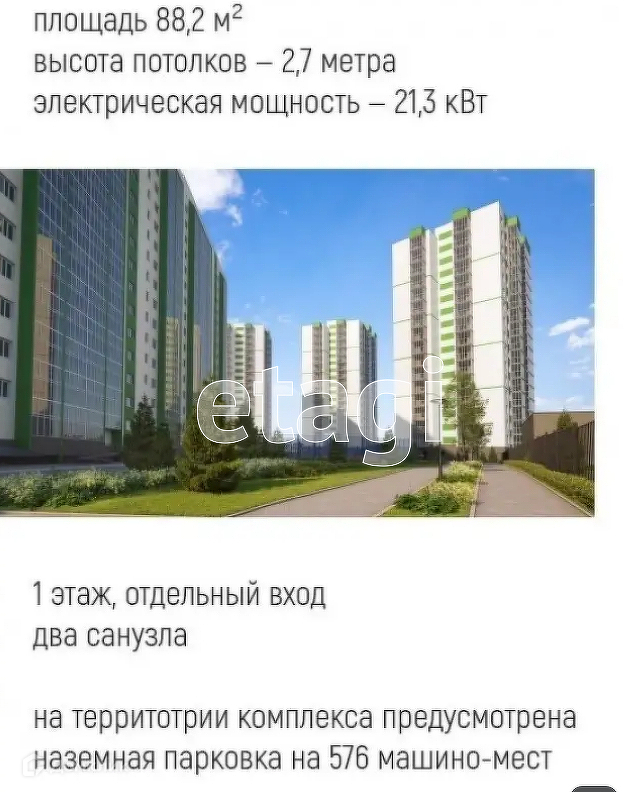 Помещение находится в новом жилом комплексе, рассчитанном на 1111 квартир. 1 этаж, отдельный вход.