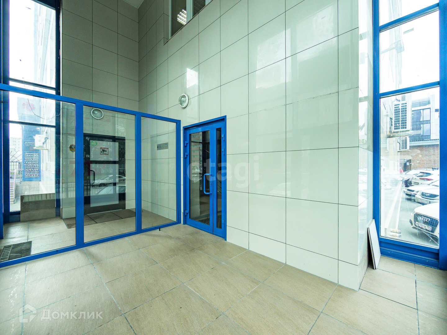 Парковка для клиентов рядом со зданием.