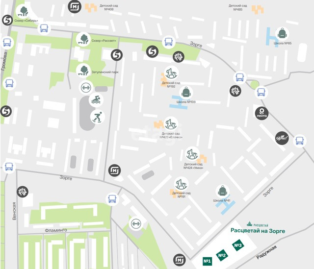 Жилой квартал «Расцветай на Зорге» расположен в экологически чистом месте Кировского района, на ул. Зорге. Квартал объединит 11 домов на просторной территории 5 Га с инфраструктурой для прогулок и отдыха. Расцветай на Зорге – это оптимальное сочетание городской инфраструктуры и спокойного уюта спального района.