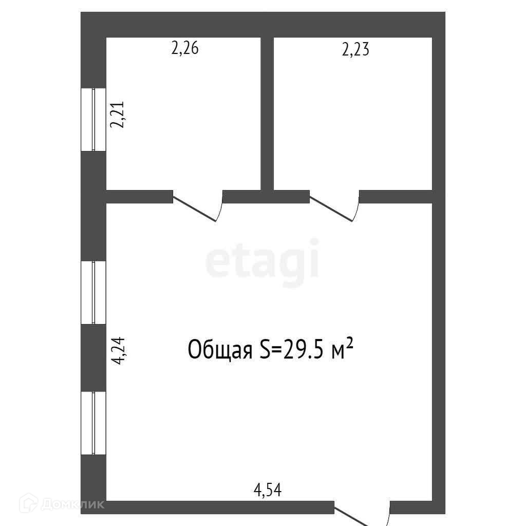 Общая площадь 29.5 м2