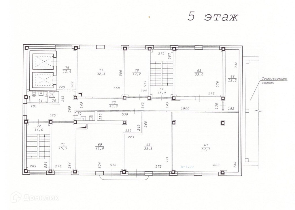 2 лифта, коридорно-кабинетная система.