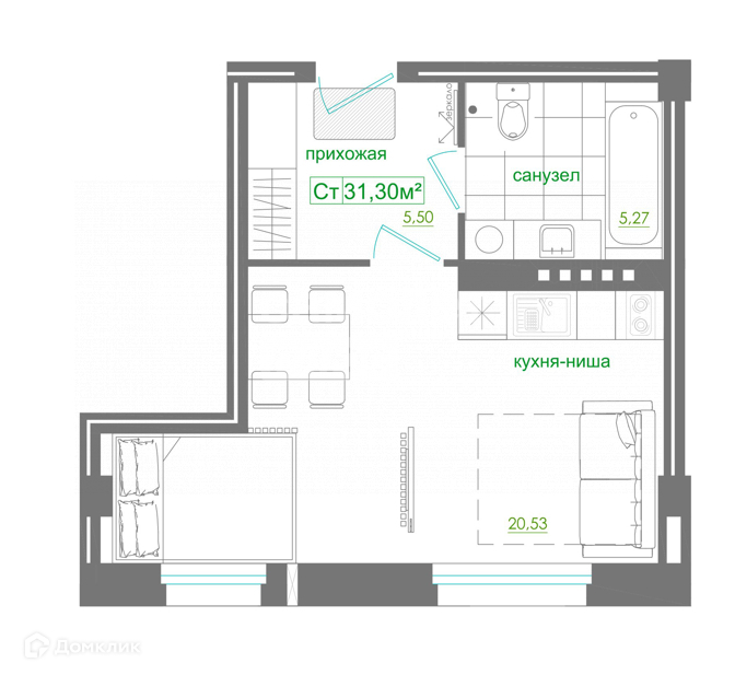Общая площадь 32 м2