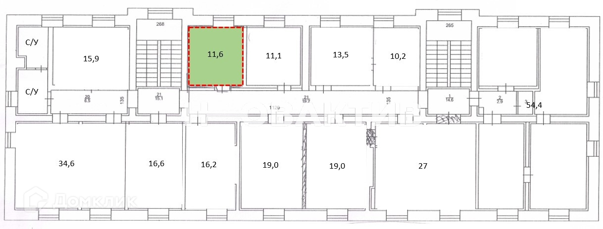 Общая площадь 11.6 м2