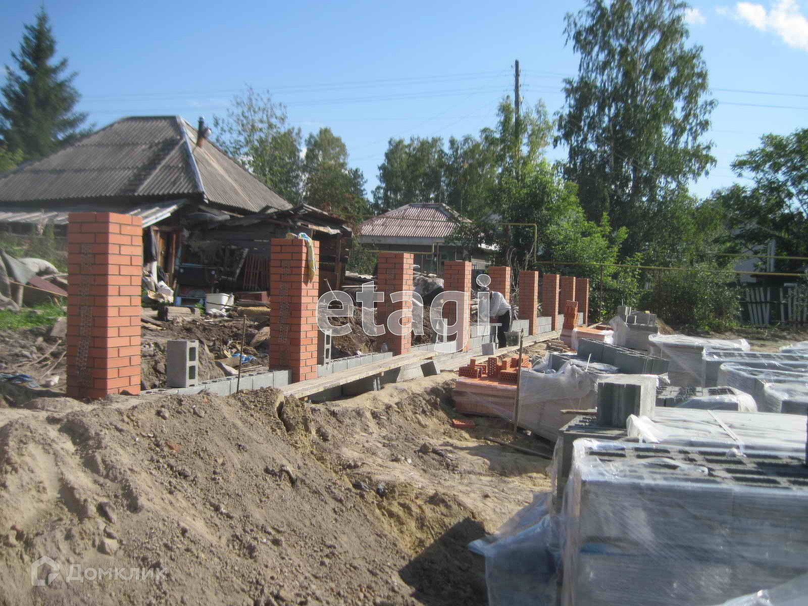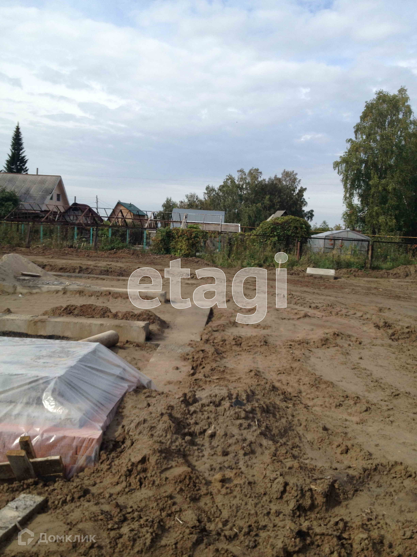 На участке имеется крепкий ленточный фундамент 13*15 м. (в подарок покупателю проект дома - получено разрешение на строительство). С одной стороны установлен забор (кирпич/сибит).