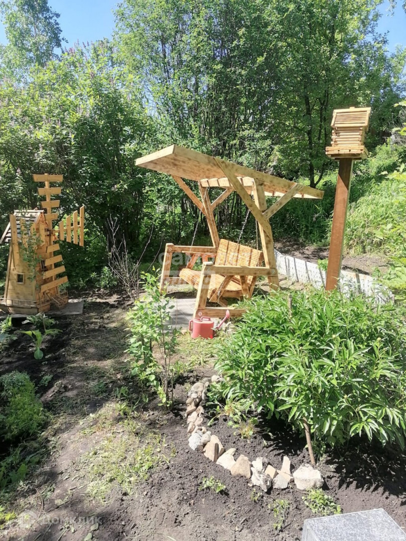 На участке небольшой домик, действующая баня, беседка, капитальный бассейн, зона отдыха с деревянными качелями.