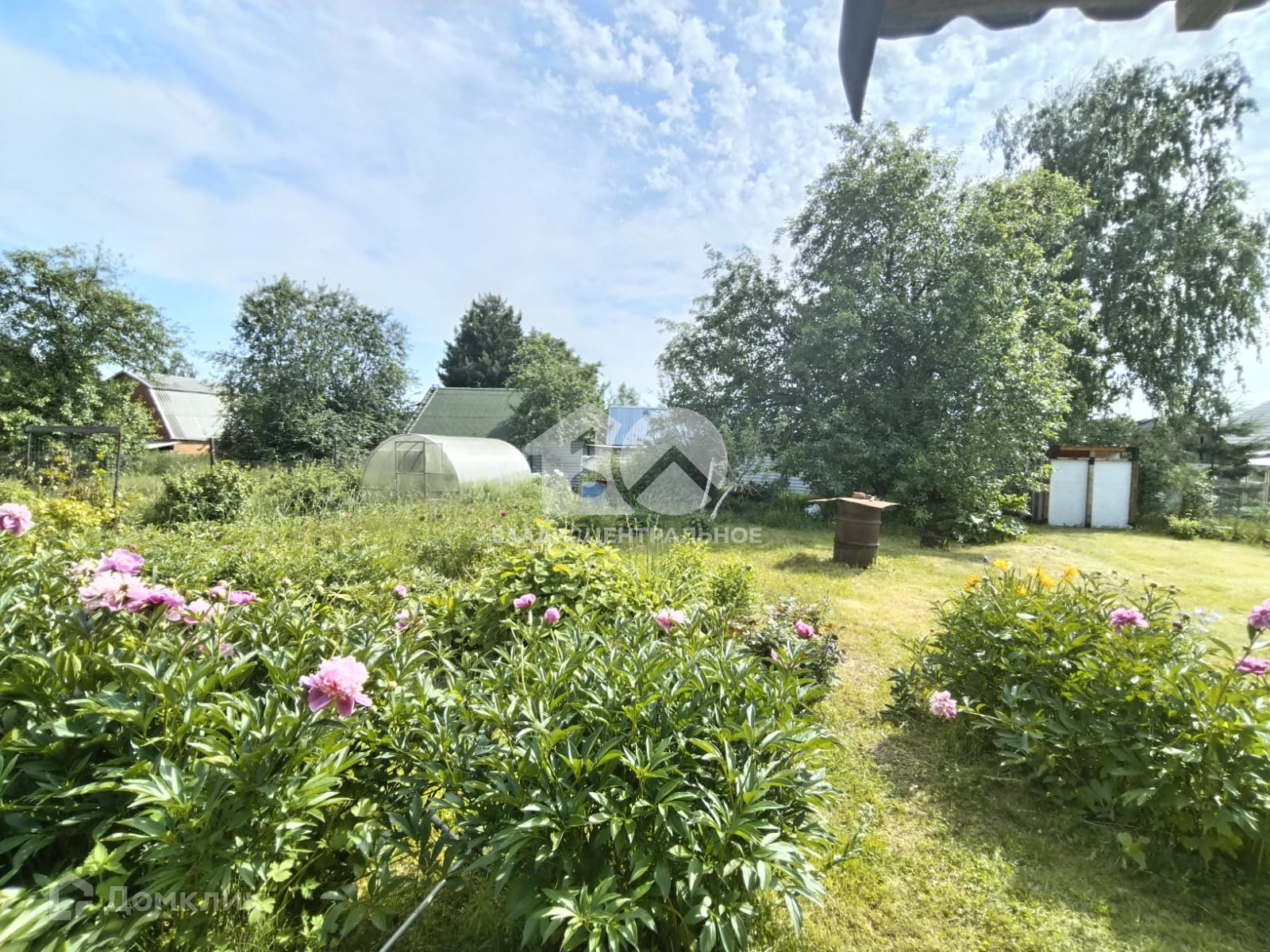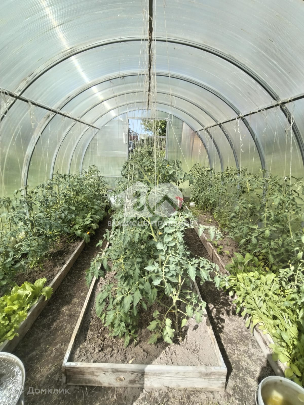 На участке большая теплица.