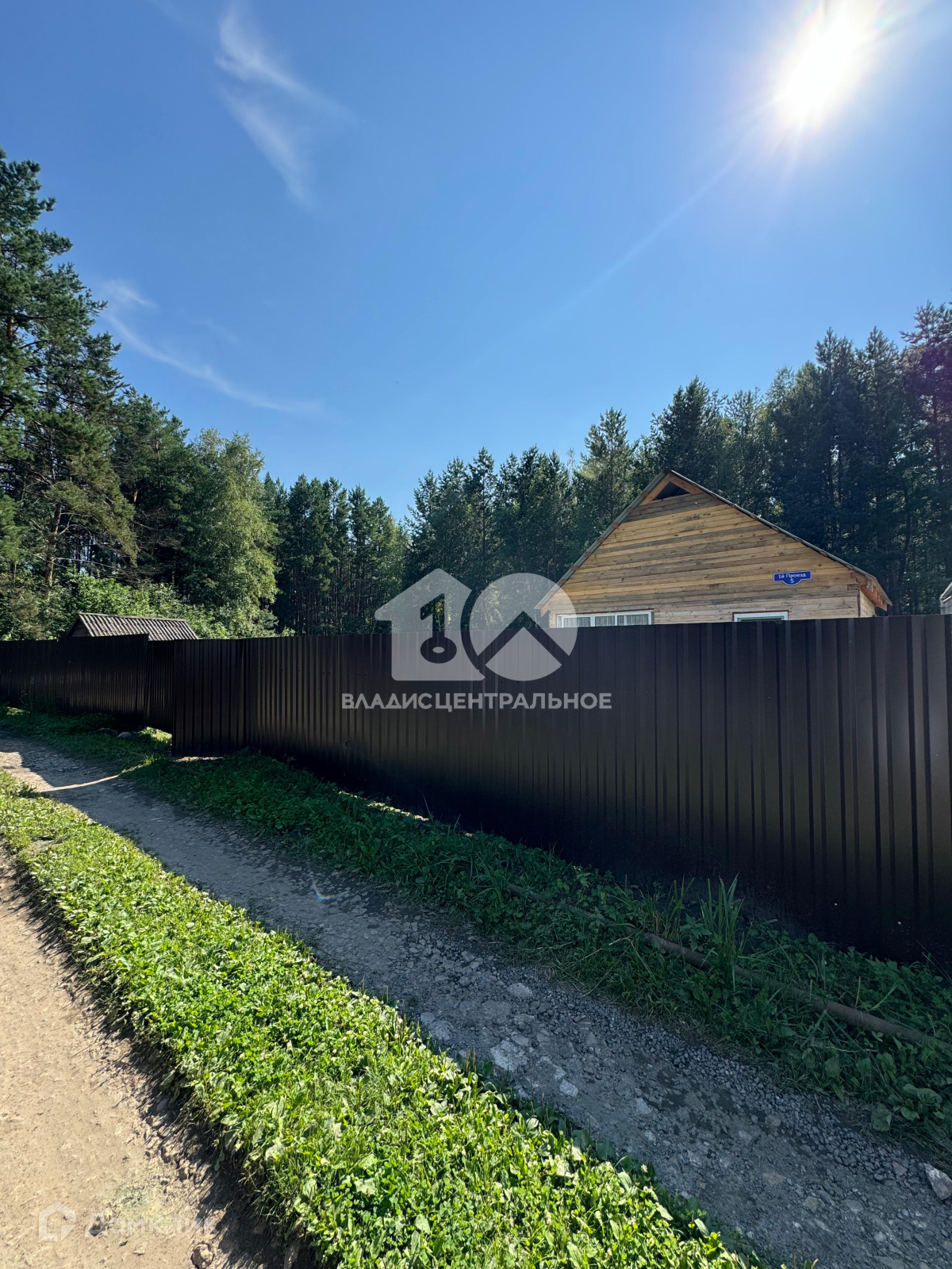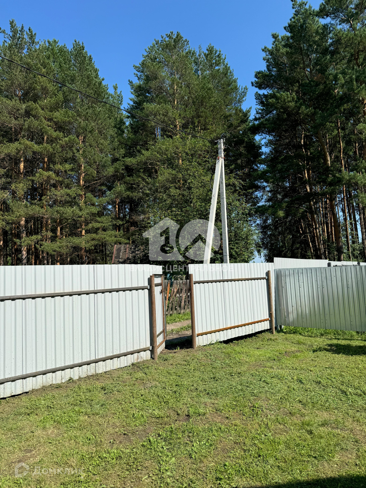 Территория огорожена высоким забором из профлиста.