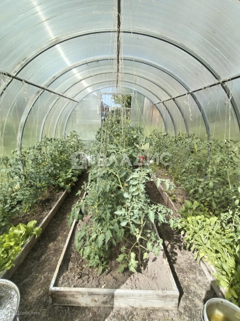 На участке большая теплица.