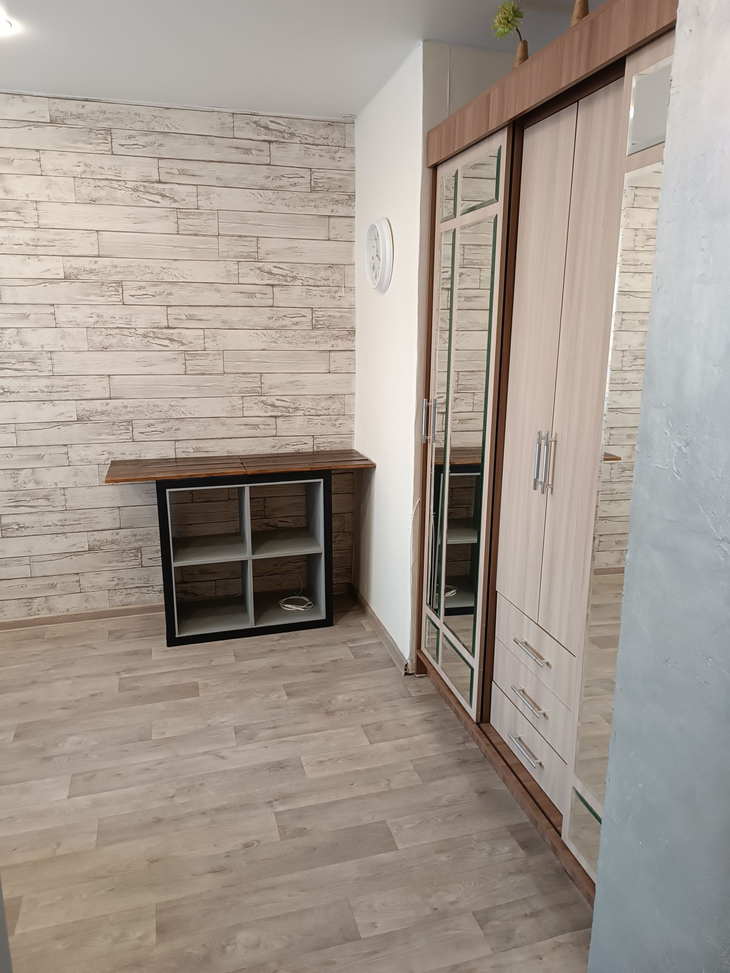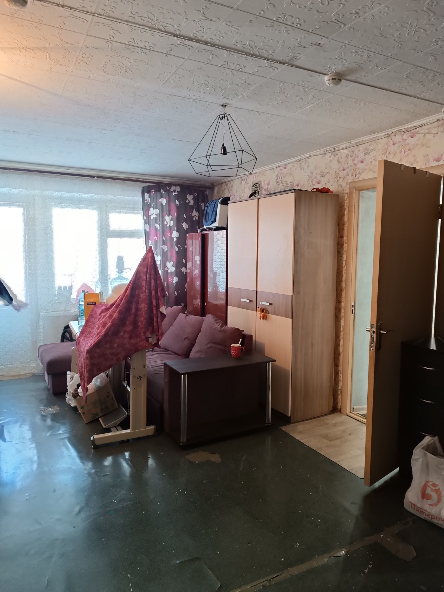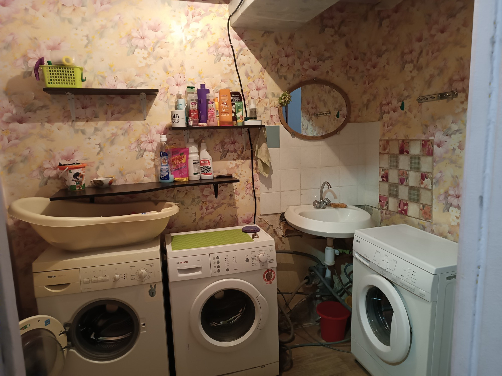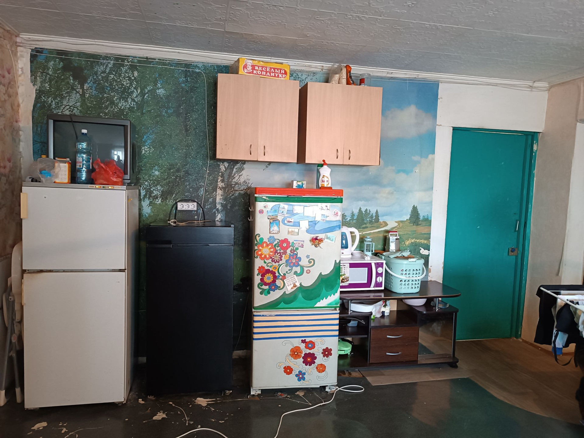 В комнате хороший ремонт, холодильник, стиральная машинка.