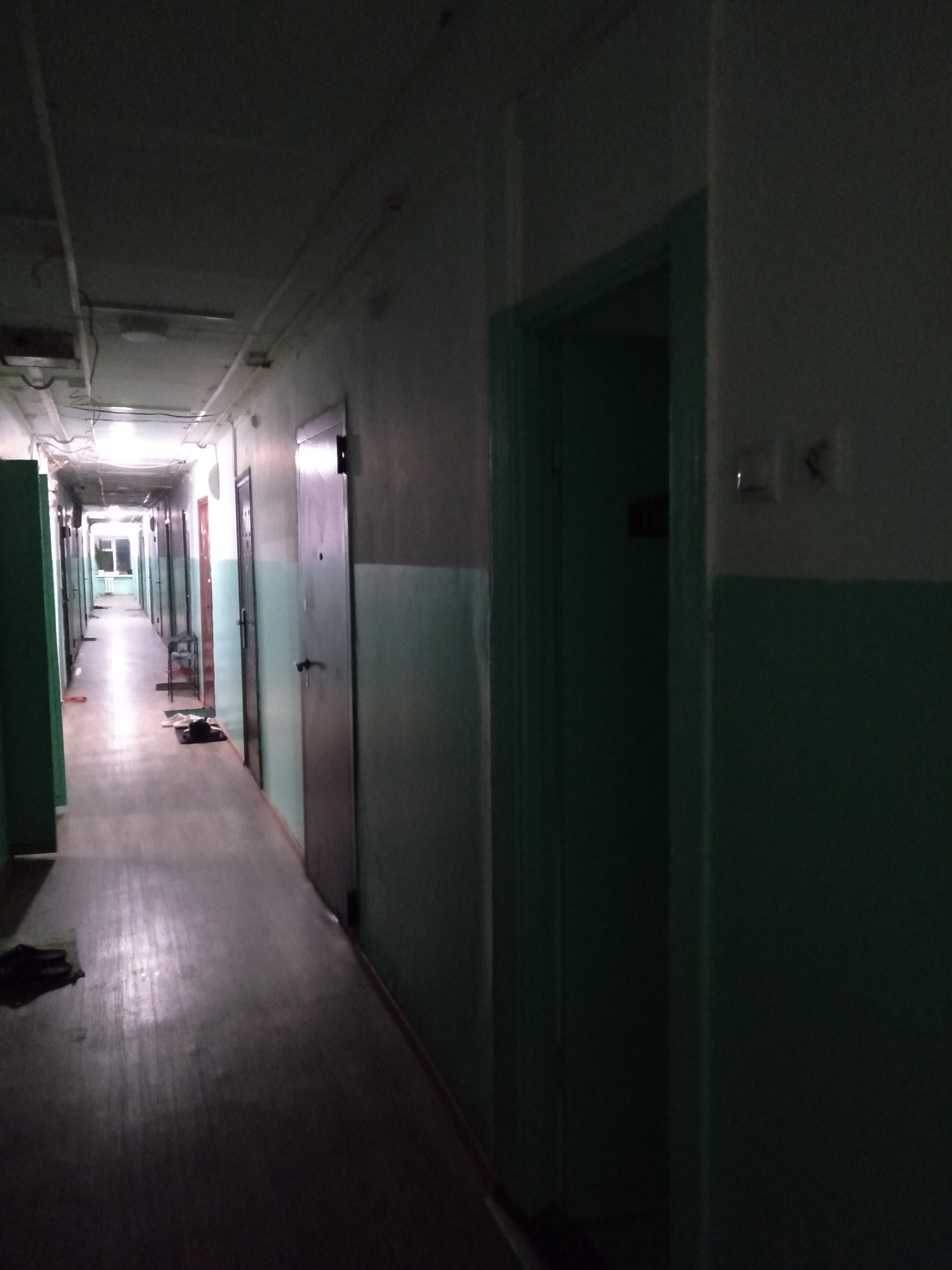 На этаже две лестничных клетки, два туалета и умывальника в разных концах коридора, недавно сделан ремонт.