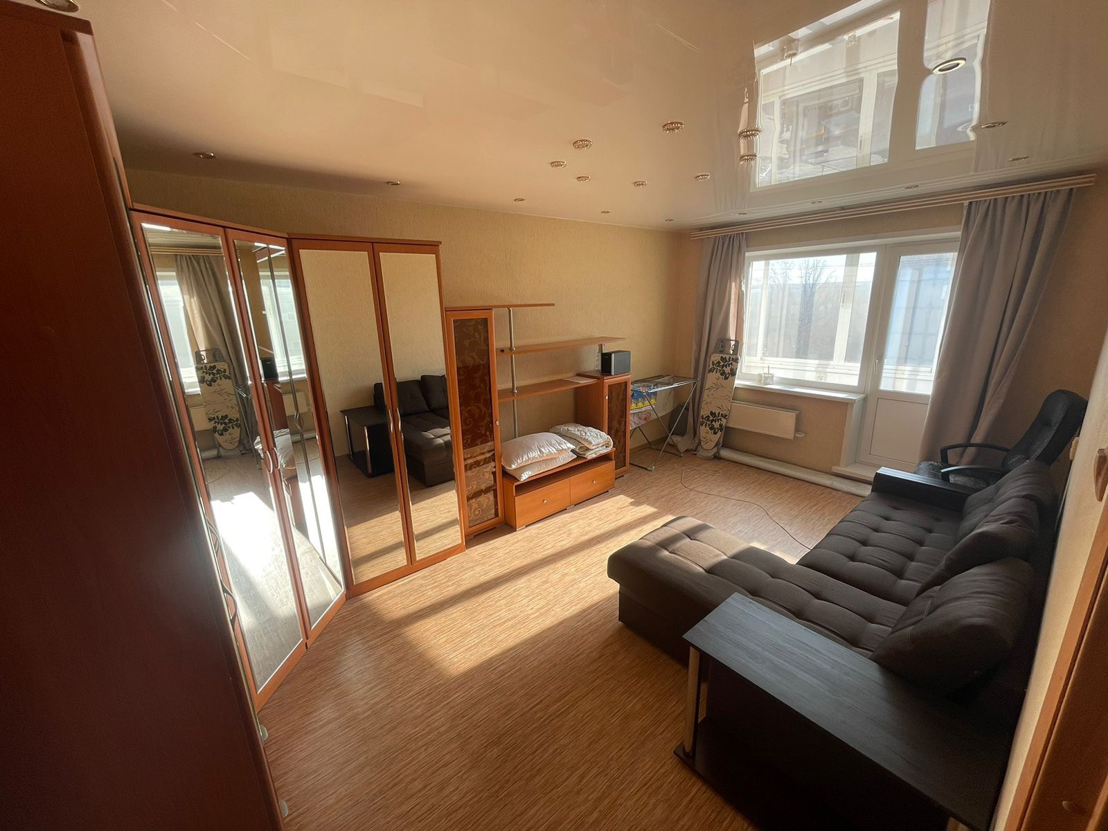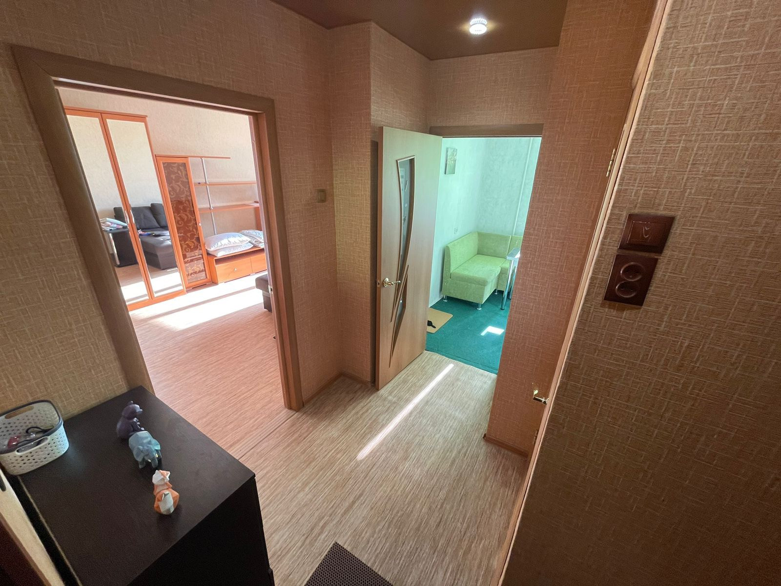 Сдам 1-ю, светлую, уютную квартиру семье. В квартире сделан ремонт, из мебели остается шкаф, стеллаж, кухонный диван, стол , холодильник, встроенная плита и стиральная машина.(диван в комнате отсутствует)