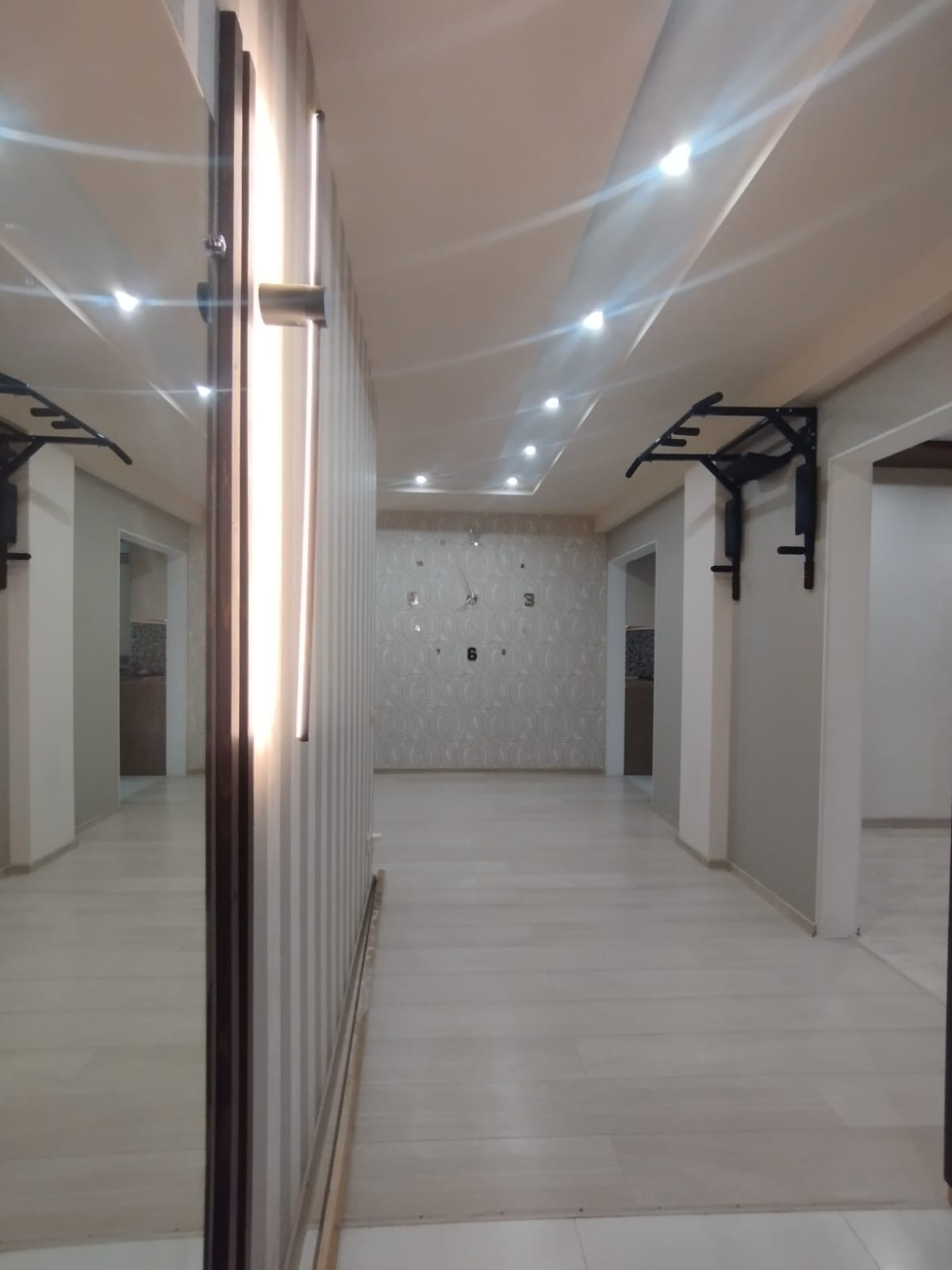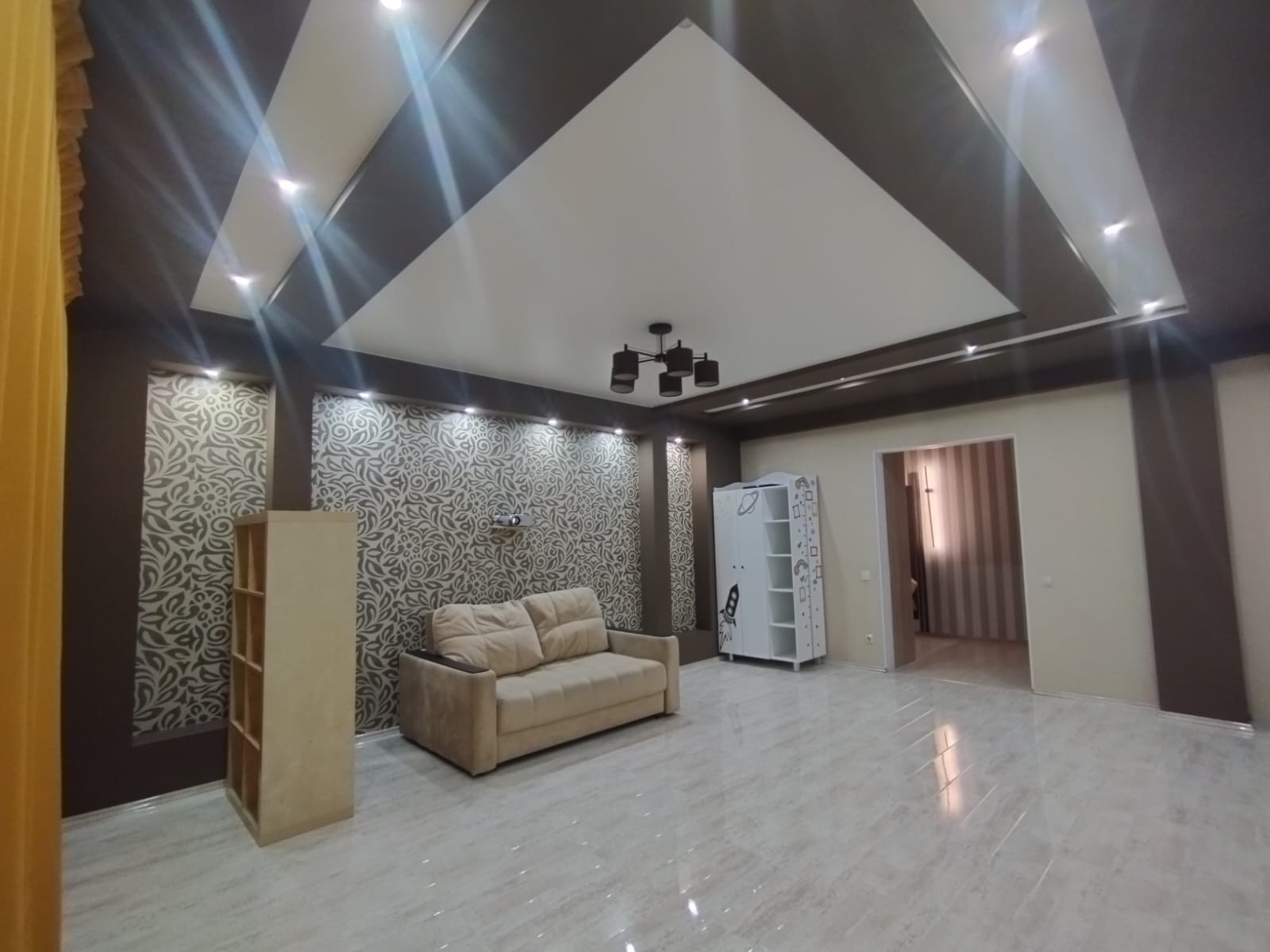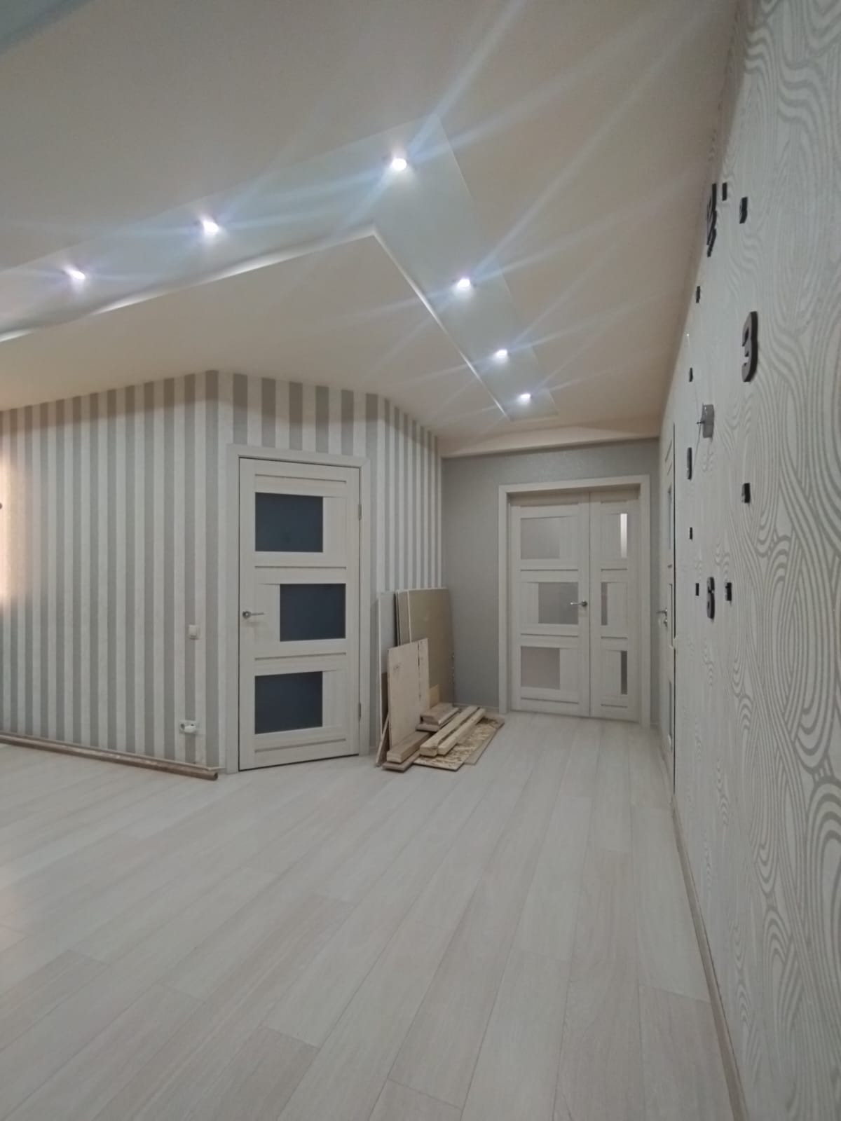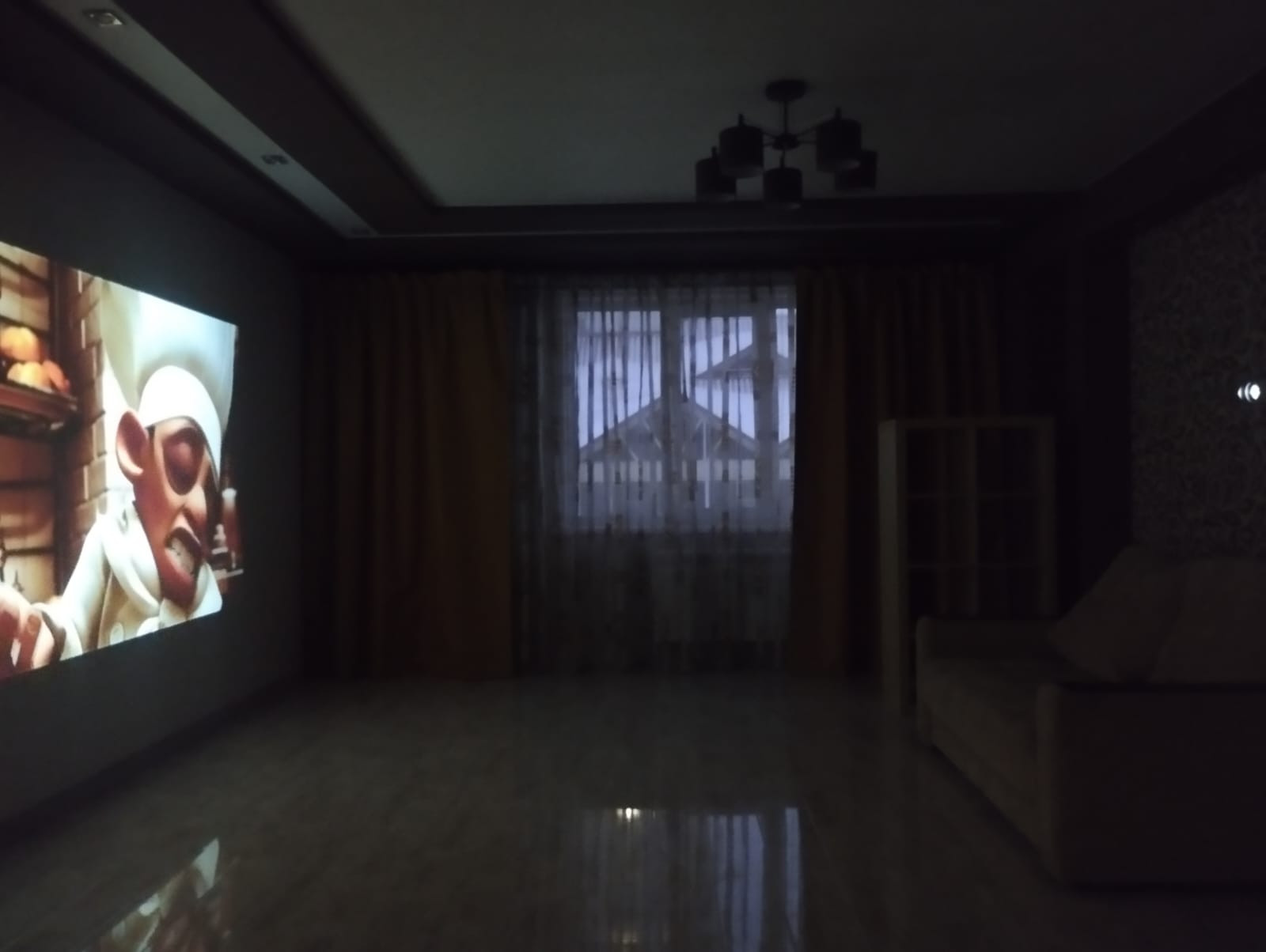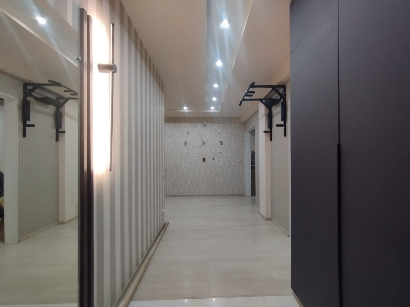 Планировка: кухня-гостиная, спальня, зал (большая комната) - можно сделать её под детскую или оставить как кинотеатр, коридор, санузел, 2 гардеробные. Окна выходят на обе стороны дома. В квартире есть всё необходимое для жизни (вся кухонная техника, постельные принадлежности, крупная/мелкая бытовая техника). Квартира очень светлая, уютная и тёплая.