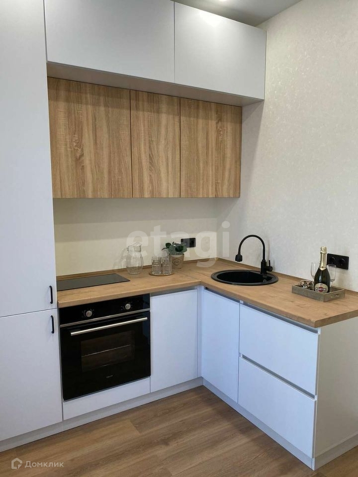 В квартире выполнен ремонт по дизайн проекту, есть вся необходимая мебель и техника (кухонный гарнитур, холодильник, электрическая плита, обеденная зона, шкаф, стиральная машина, телевизор и микроволновая печь.