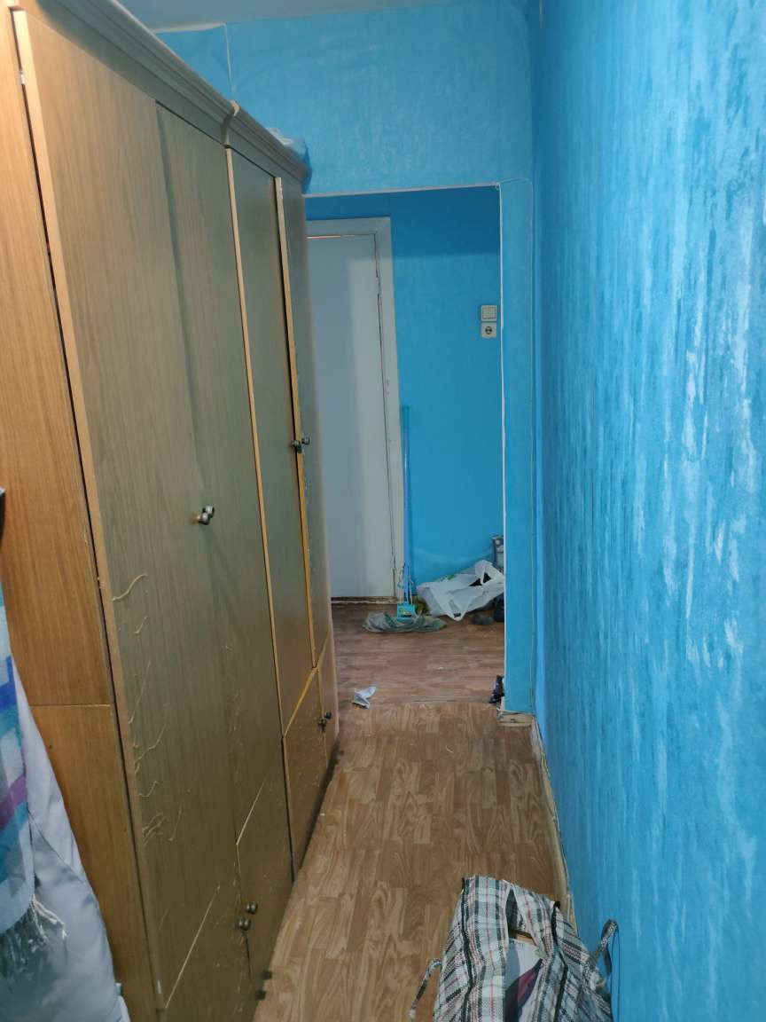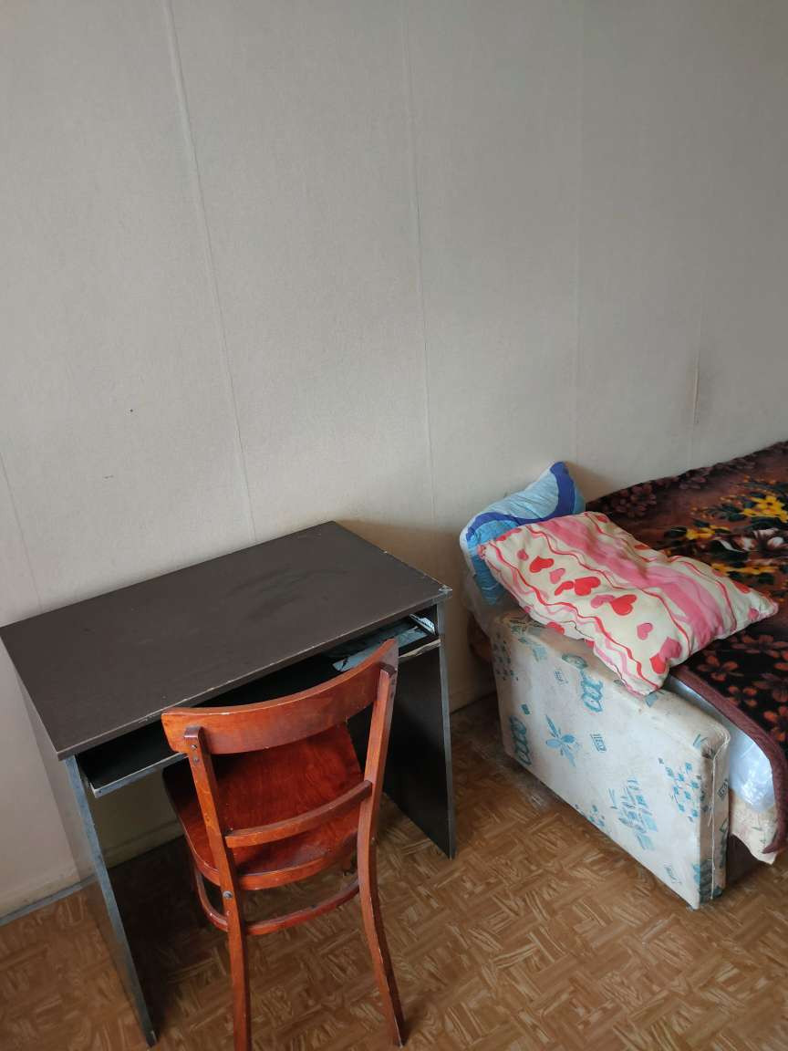 Есть 2 платяных шкафа, телевизор, 2 тумбочки, диван с большим матрасом, холодильник, стиральная машина, микроволновка, кухонный стол и компьютерный стол. Есть домофон, проведен интернет.