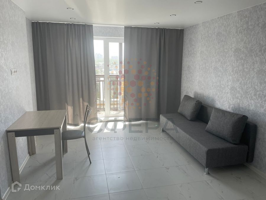 В студии есть всё необходимое для комфортного проживания, сделан свежий ремонт, всё абсолютно новое - диван, кухонный гарнитур, варочная панель, стиральная машина; застеклённая лоджия, откуда открывается красивый вид на город.
