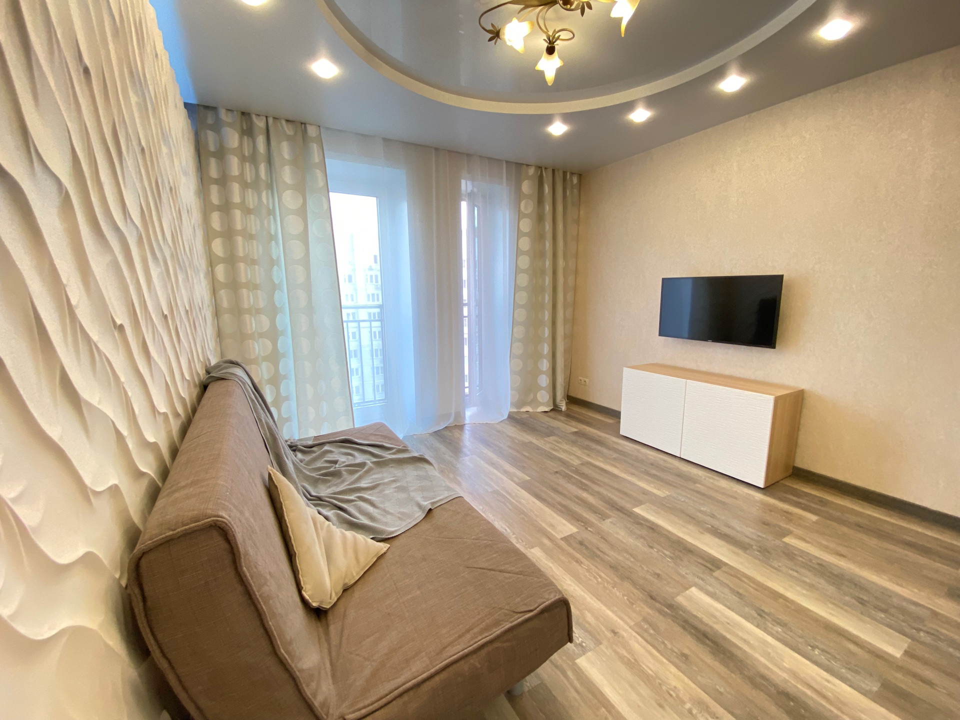 В квартире выполнен свежий ремонт из качественных материалов, удобная планировка с просторной кухней , большой комнатой и  гардеробной. Вся мебель новая в отличном состоянии. Все необходимое есть для комфортного проживания.