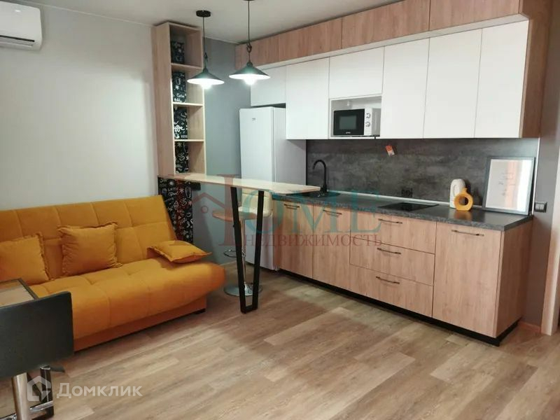 Видовая Квартира-студия в новом жилом комплексе. Вид на реку: все рассветы и шикарные закаты ваши. Окна в пол, балкон 6 кв.м. открытый и полностью стеклянный. Летом ваша личная территория для отдыха и загара! Квартира чистая, светлая, теплая, тихая, аккуратная, стильная! Ванная: керамогранит премиум, душевая панель с гидромассажем. В прихожей встроенный шкаф, очень вместительный. В комнате диван  с ортопедическим основанием и независимый пружинный блок, легко превращается в двухспальную кровать. Кухонный гарнитур по индивидуальному заказу. В комнате очень много мест для хранения. На полу ПВХ плитка.