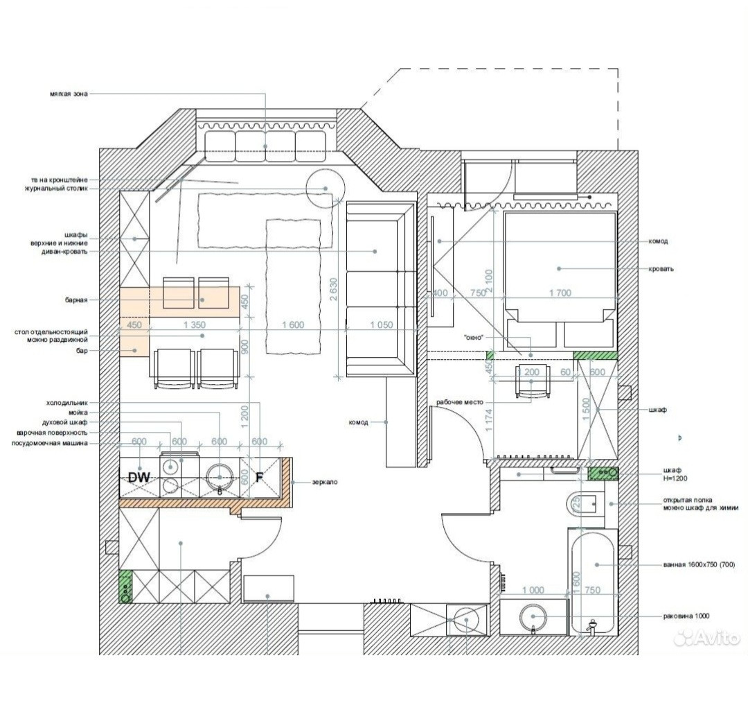 Жилая площадь 34 м2