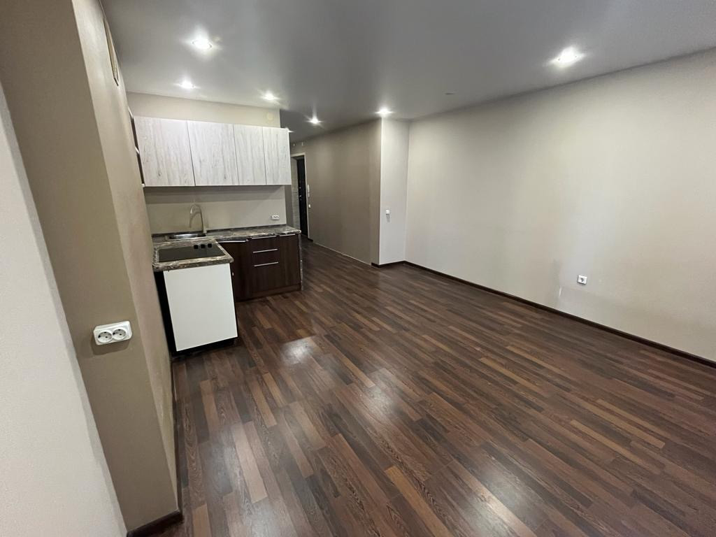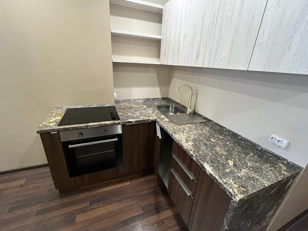 Студия в хорошем состоянии. Из мебели есть только кухонный гарнитур. Из техники плита! Вопрос с мебелью и техникой можем обсудить в лс.