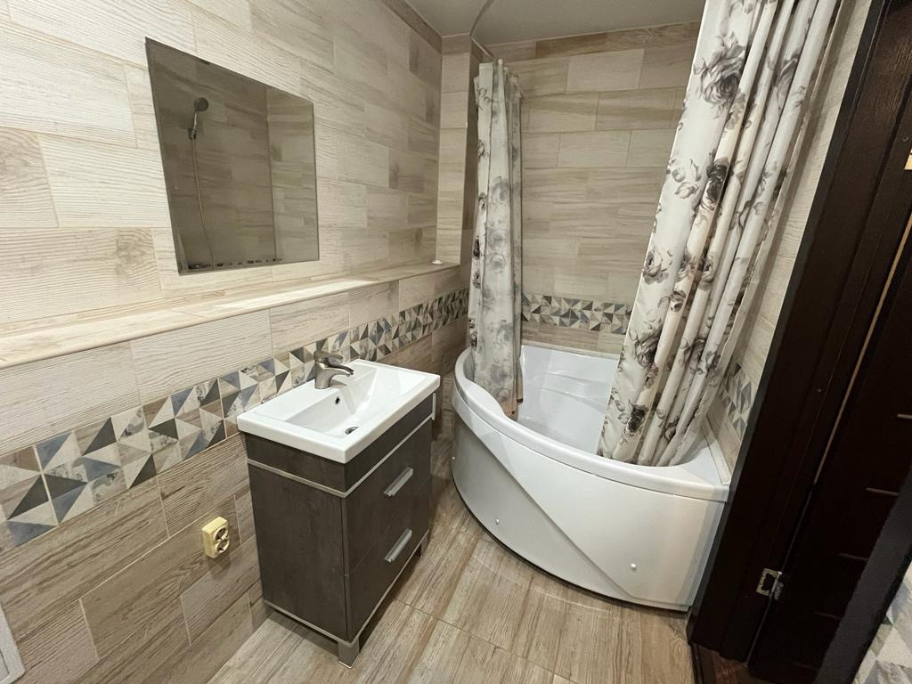 Большой балкон, как отдельная комната. На балконе теплый пол, можно регулировать температуру. Рядом с домом в минуте ходьбы продуктовые магазины, спортивная детская площадка, надземная парковка. Так же в двух минутах расположена благоустроенная лесная зона для пеших прогулок. В зимний период обустроенный горнолыжный склон с подъемником, лыжная база. Квартира будет сдана исключительно добросовестным и чистоплотным людям, которые умеют ценить чужое имущество.