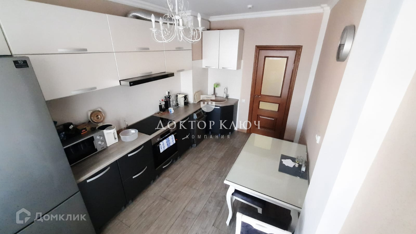 Кухня: гарнитур, стол и стулья, холодильник, микроволновка, термопот, чайник, духовка, электрическая плита + вытяжка, фильтр-кран для воды аквафор, посудомоечная машина, капсульная кофемашина.