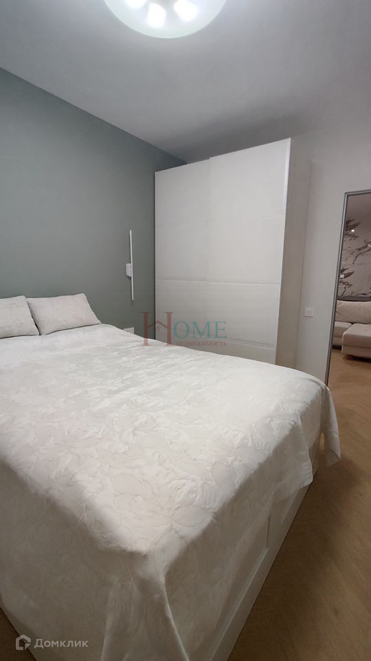 Спaльня 14 кв м с выходом нa балкoн, имeется кровать 160x200 вместитeльный шкaф.