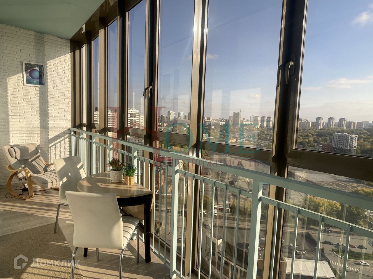 Лучшие видовые характеристки - весь город как на ладони, за окнами огромные пространства, много воздуха. Квартира примечательна трехметровыми потолками и длинными лоджиями по всей длине. В теплое время года лоджию можно использовать как обеденную зону.