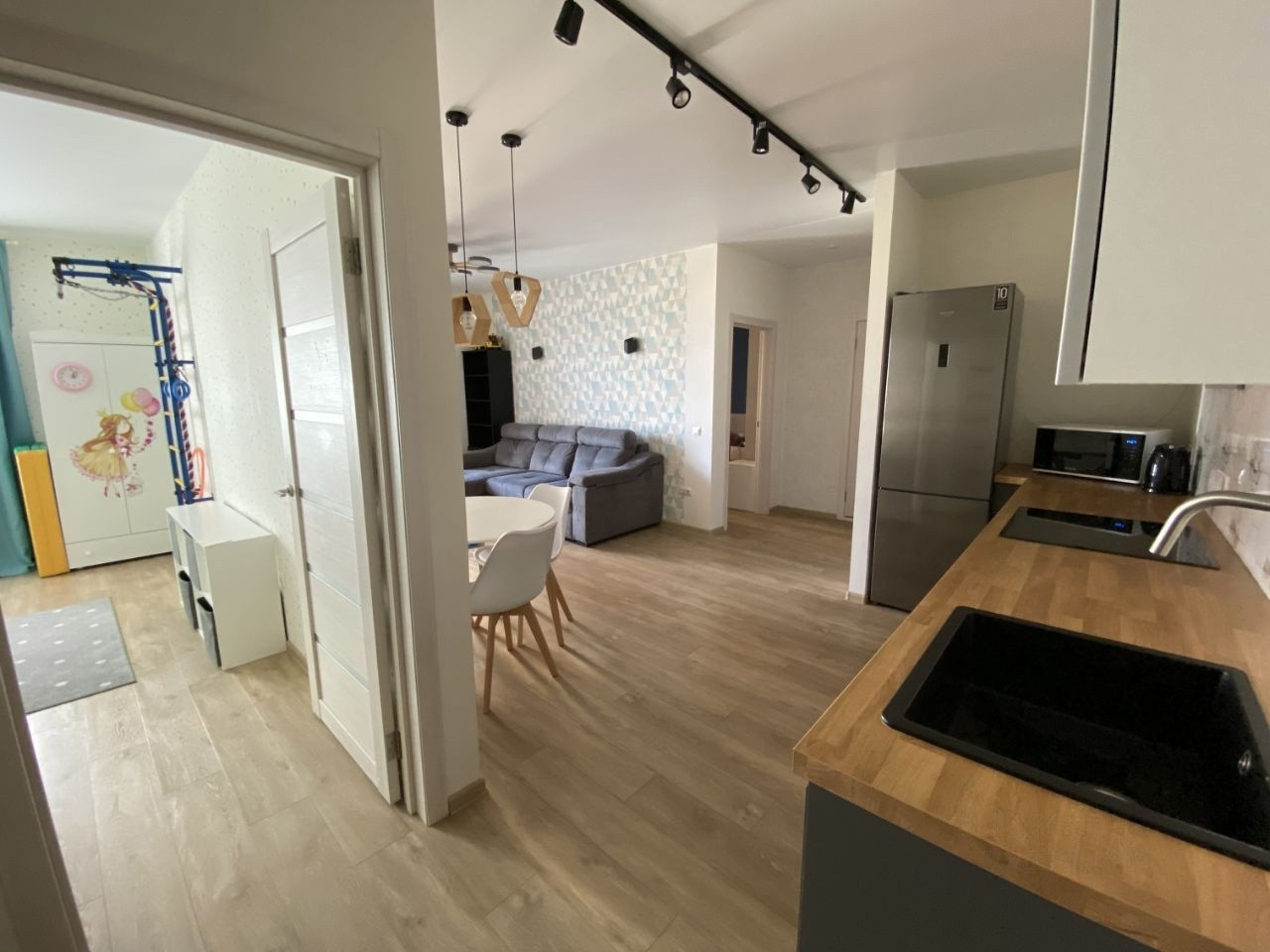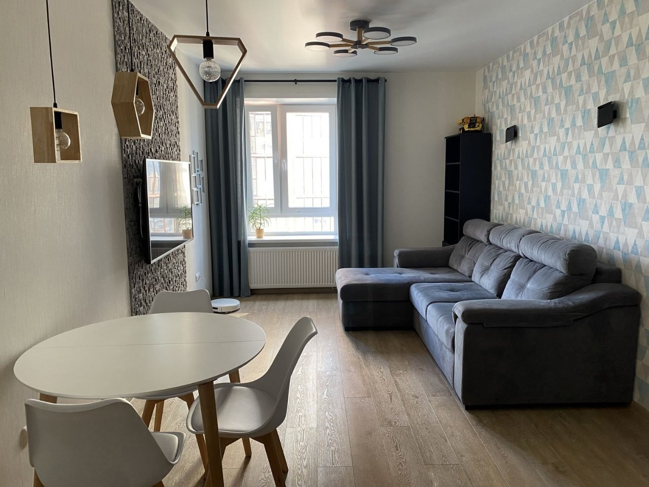 Квартира в отличном состоянии, выполнен ремонт в скандинавском стиле. Имеется вся необходимая мебель и бытовая техника.