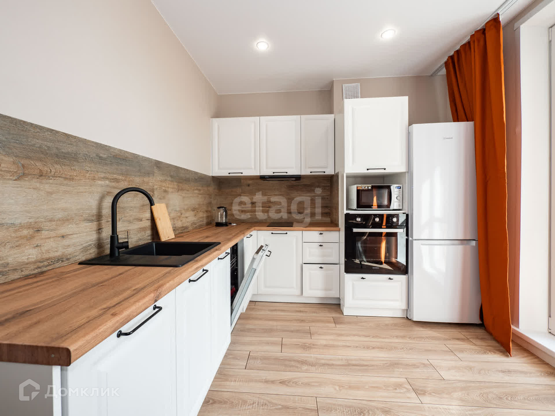 Имеется всё необходимое для проживания: плита, холодильник, столы, стулья, свч печь, чайник, духовой шкаф, ПОСУДОМОЕЧНАЯ МАШИНА.