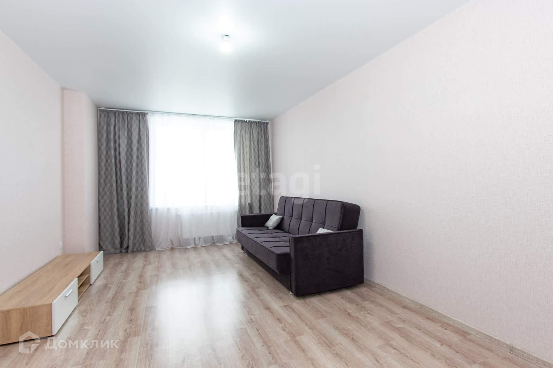 Из мебели и техники есть всё необходимое, пока нет только шкафа, его собственник докупит. Вся техника и мебель новые. Санузел раздельный. Есть застеклённый балкон.