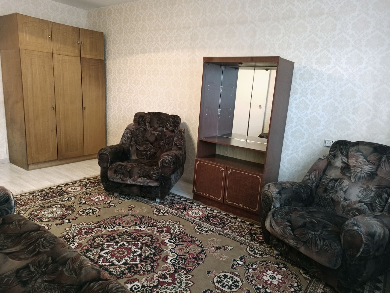 Мебель: двухспальная кровать,диван,два кресла,шкаф,стеллаж.