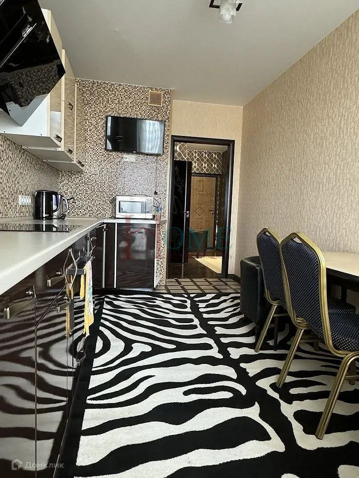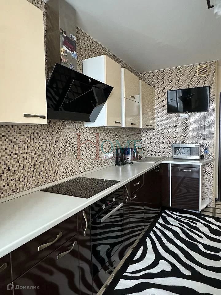 Квартира выполнена в стиле косметического ремонта и оборудована всем необходимым для комфортного проживания. В кухне установлены холодильник, плита, микроволновка, стиральная машина, посудомоечная машина, водонагреватель, а также телевизор. Санузел является совмещенным. В квартире есть вся необходимая мебель, включая кухню, хранение одежды и спальные места.